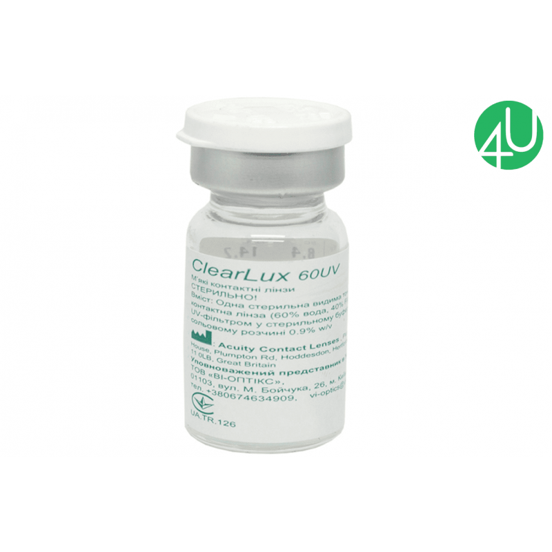 В упаковці 1 лінза ClearLux 60 UV в скляному флаконі