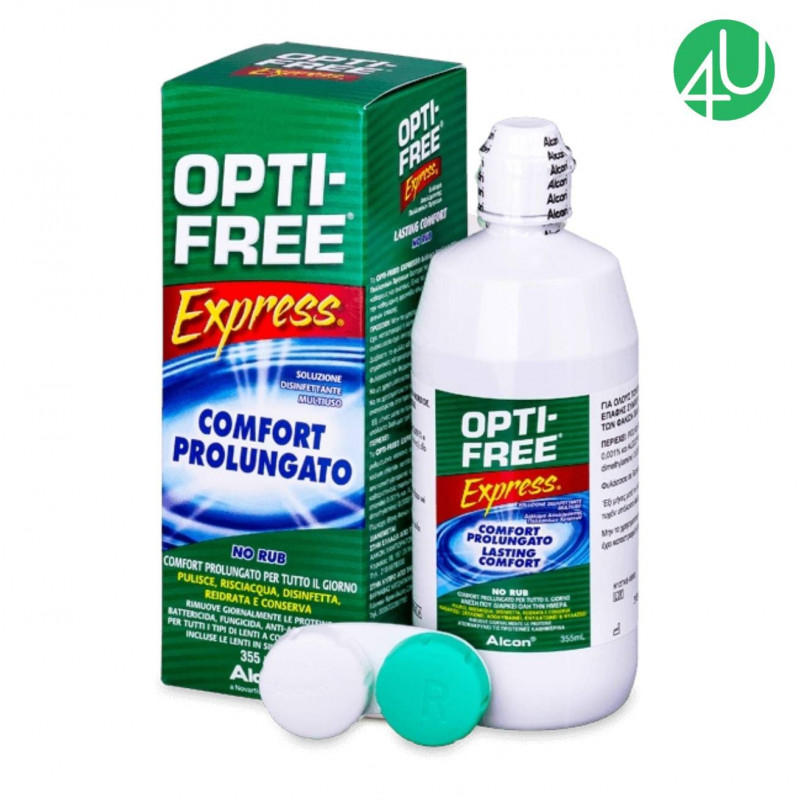 Opti-Free Express — багатофункціональний розчин для чутливих очей. Функції: очищення, дезінфекція, ополіскування, зволоження, видалення відкладень і зберігання контактних лінз.