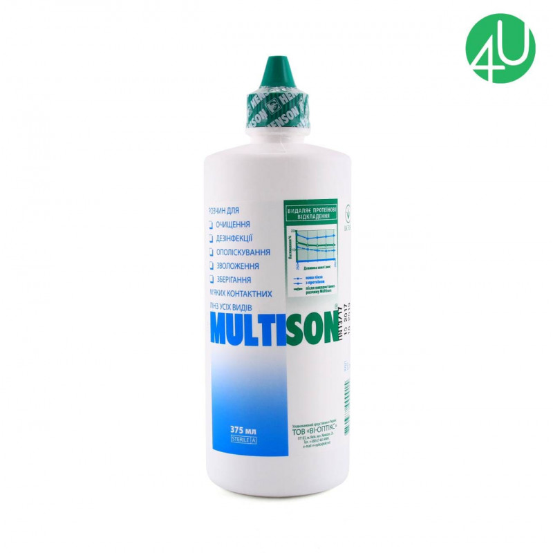 Multison — многофункциональный раствор для чувствительных глаз. Функции: очистка, дезинфекция, ополаскивание, удаление отложений и хранение контактных линз.