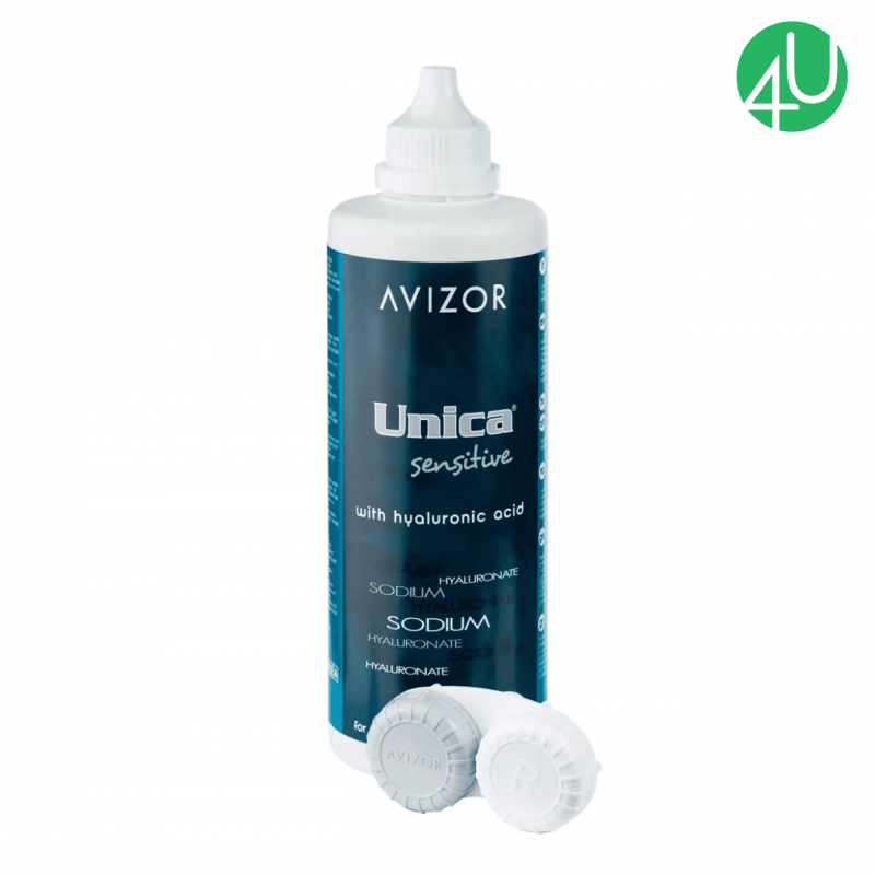 Unica Sensitive — багатофункціональний розчин з гіалуроновою кислотою для чутливих очей, схильних до сухості. Функції: очищення, дезінфекція, ополіскування, видалення відкладень, зволоження і зберігання контактних лінз.